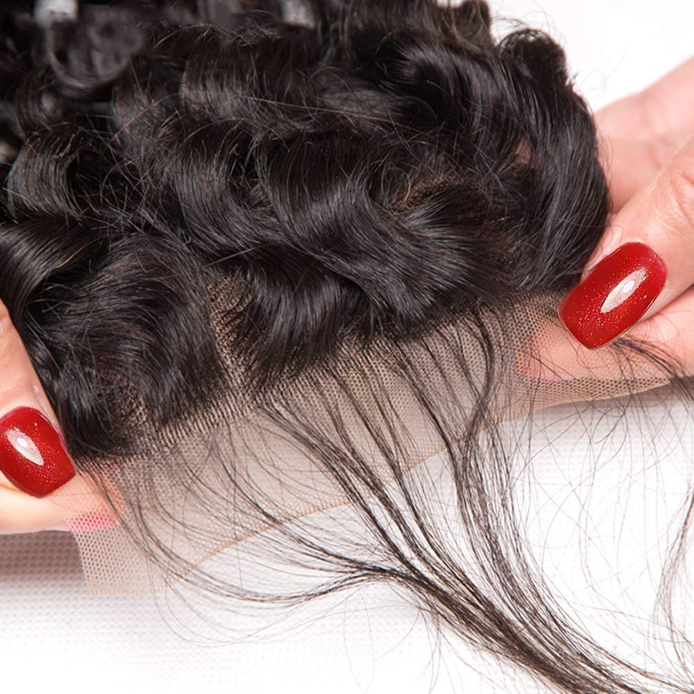 Amazon Com 22 24 26 Deep Wave Brazilian Human Hair Bundles With 20 Inch Lace Closure 4x4 Three Part With Baby Hair 100 Unprocessed Virgin Brazilian Human Weave Hair Extensions Natural Black